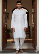 The minimalist solid design adds a sophisticated charm, while the tailored fit ensures a sharp and confident look. Paired with a matching pajama, this kurta set delivers a complete traditional outfit with effortless grace.